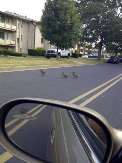 I was driving down my street the other day, in a hurry, as usual. I had to stop because of a duck.