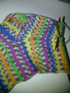 I keep thinking maybe I have too much sock yarn for socks. Maybe I should weave something with some of the sock yarn as warp. Maybe. I have seen some lovely things woven with patterned yarns. I could use a lighter yarn for the weft. I’ll have to give that some consideration.