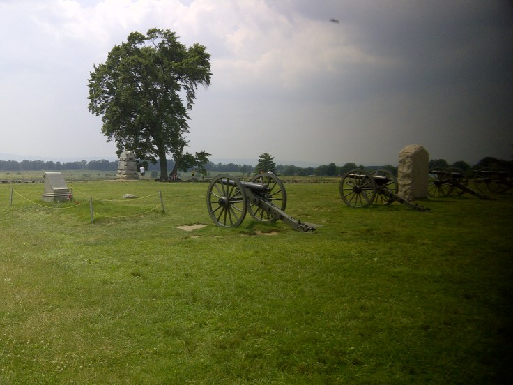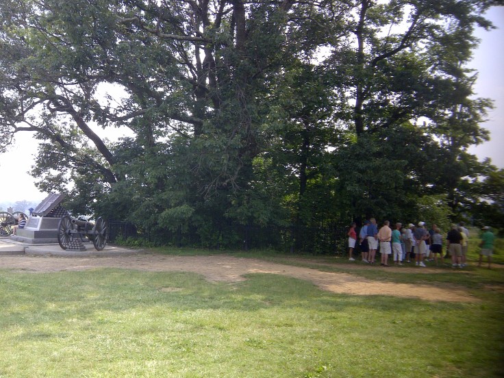 Last week a friend and I went to Gettysburg to tour the battlefield. It was bloody hot — around 92* F — and very humid. So it was very like the weather on the 3 days of battle. In fact, it was warmer than the day of Pickett’s Charge. I had the advantage of not wearing a wool uniform, not carrying gear and having air conditioning in then car.
